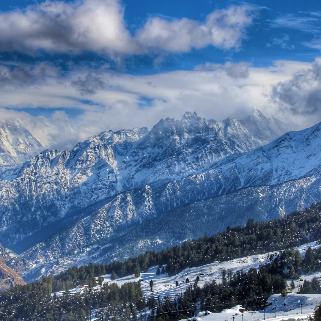 Auli is renowned for its ski slopes and panoramic views of the Himalayan peaks, offering a snowy retreat for adventure seekers.